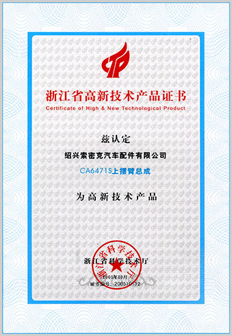 公司已先后通過IATF16949質量管理體系認證、ISO/14001環(huán)境管理體系認證和OHSAS18001職業(yè)健康安全管理體系認證。是“國家高新技術企業(yè)”“行業(yè)龍頭企業(yè)”和“全國百家優(yōu)秀汽車零部件供應商”。